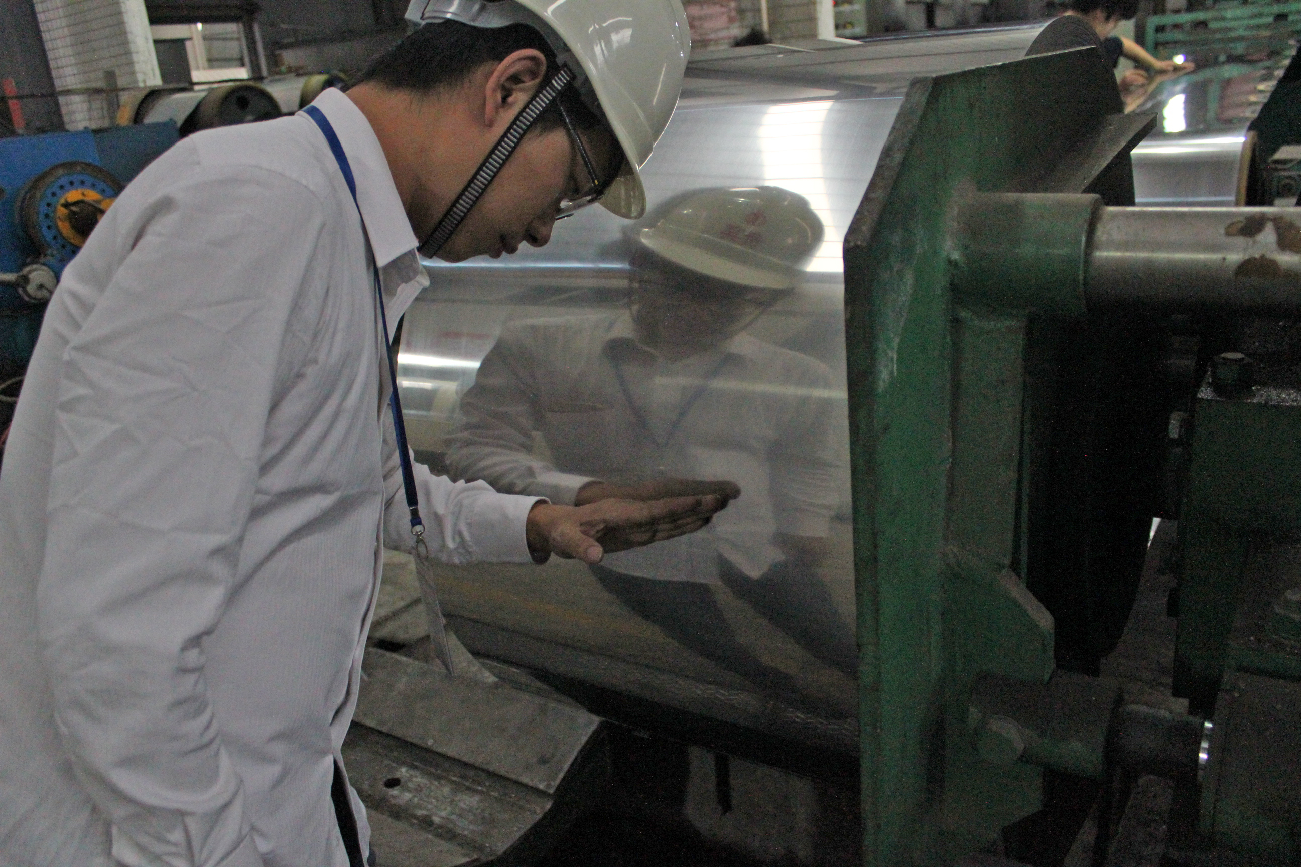 品管仔細檢查成品表面